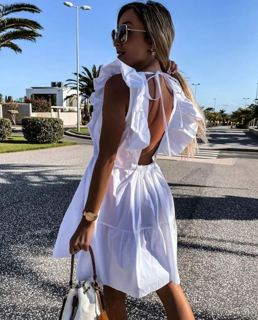 Heather Pleated Flute Sleeves Frill Dress - Black