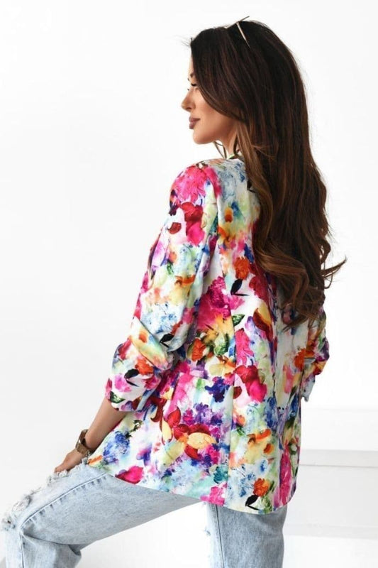 Pink Floral Lapel Detail Ruched Sleeve Blazer