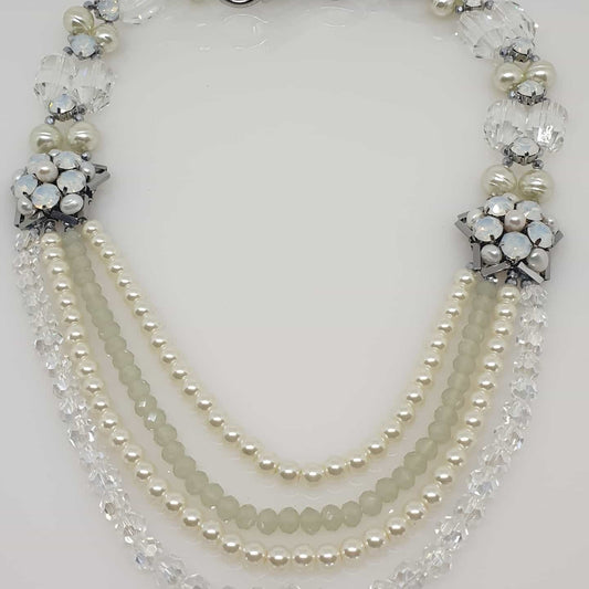 Four Strand Pearl And Crystal Glass Bead Statement Necklace