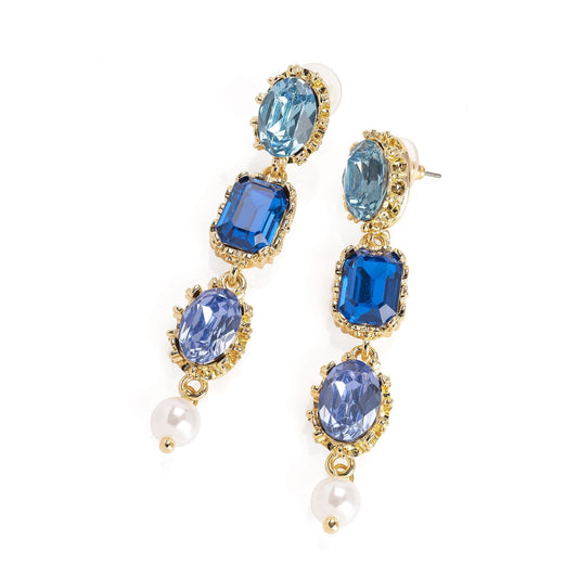 Gold colour cream pearl effect blue tone drop earring. ER33186