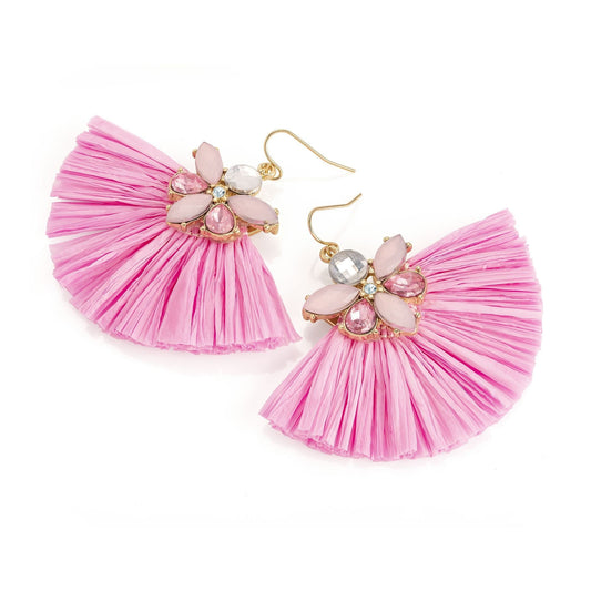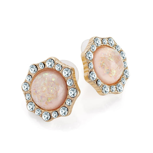 Gold colour pink tone crystal paper fan design earring. ER33232