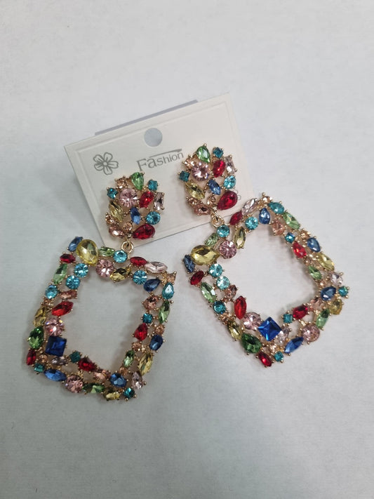Gorgeous Multicoloured Diamante Square Drop Earrings
