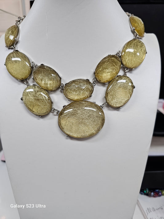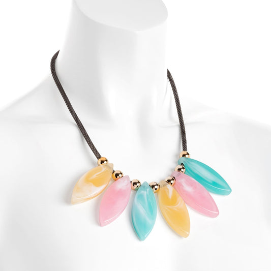 Hematite and gold colour pastel marble effect bead chain necklace.
