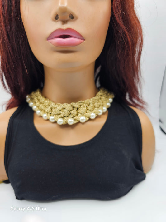 Gold Mesh & Pearl Statement Choker Regal Elegance