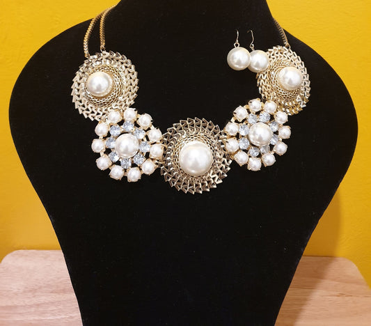 Stunning Gold Plated Infused With Pearls And Fashion Cryal Tones