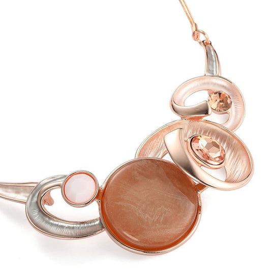 Yellow, Carmel, Silver Tone And Large Peach Stone Necklace