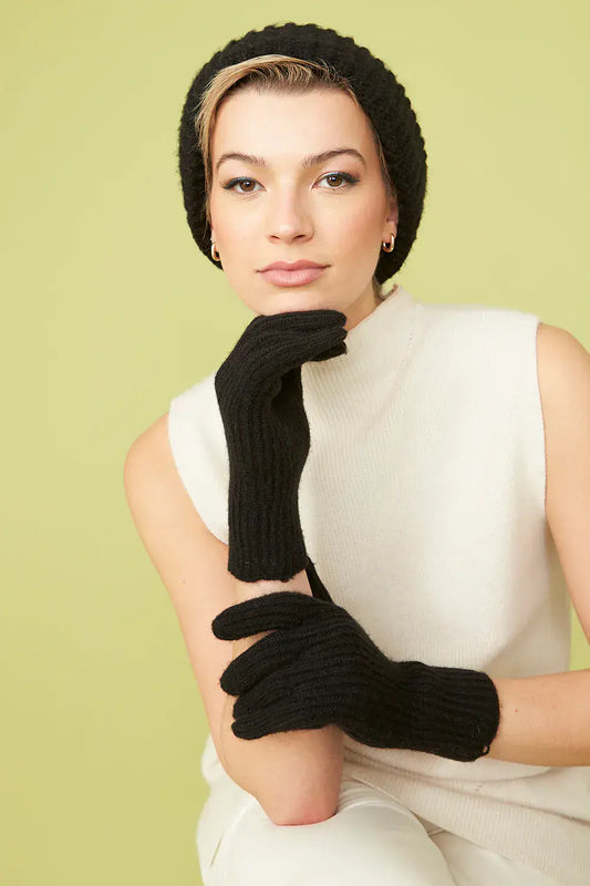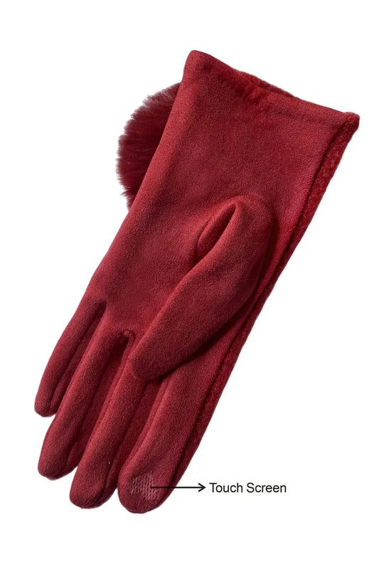 Faux Fur Pom Pom Touch Screen Gloves - Black