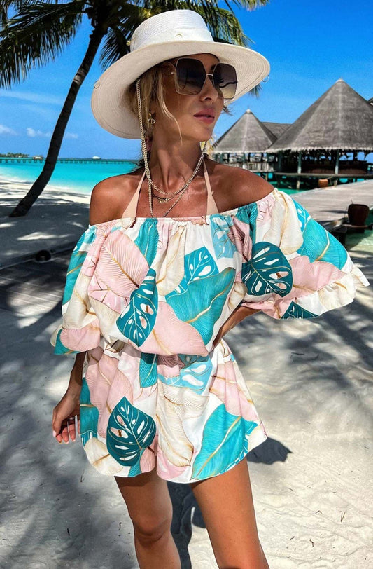 Florrie Bardot Floral Frill Playsuit - Ivory