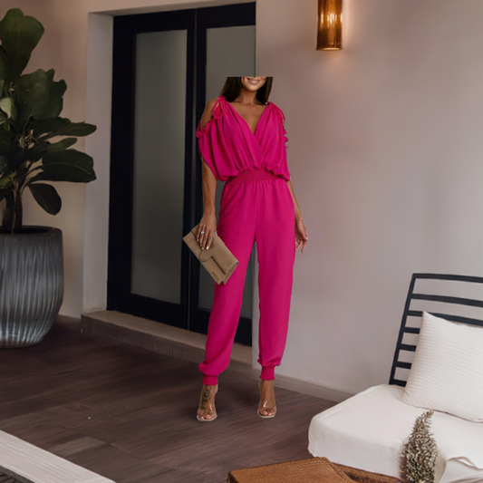 Azeila Cold Shoulder Jumpsuit -Hot Pink