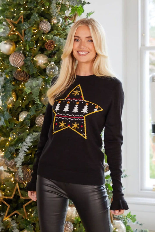 Black Reindeer Fairisle Star Neck Christmas Jumper