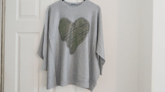 Clarissa - Gray Sparkling Heart Knitted Jumper