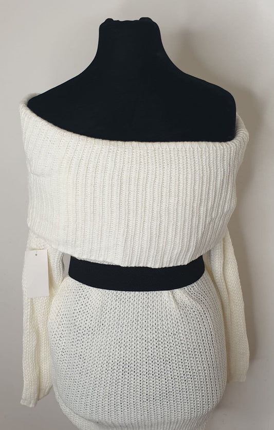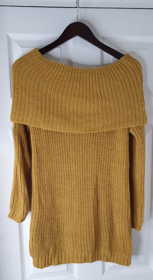 Mustard Off -The Shoulder Knitted Jumper Dress.