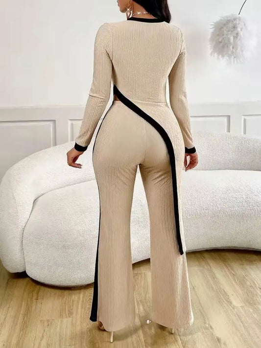 Trixie Beige Woven Knitted Off The Shoulder Co-ord Lounge Set