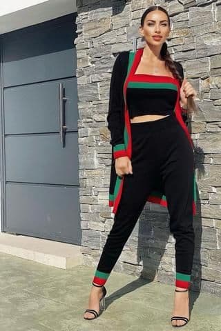 Zara Black Red and Green Striped Fine Knit 3 Piece Lounge Co-ord Set