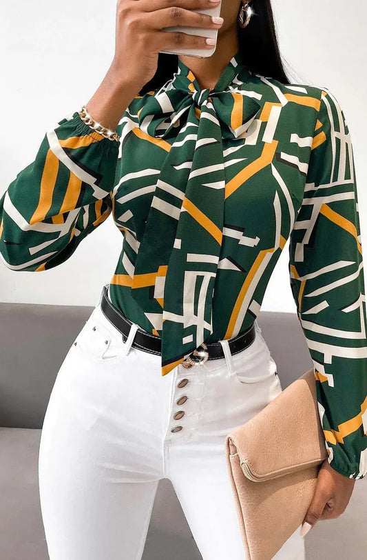 Bexlie Plus Size Abstract Print Pussybow Shirt Top